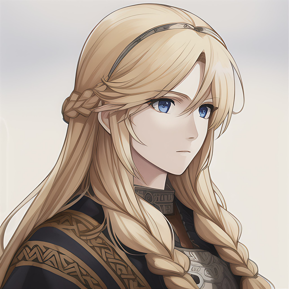 a portrait of female viking with long blonde hair